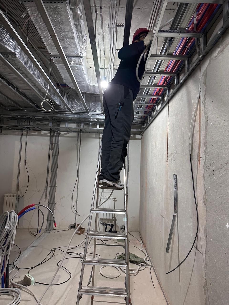 Параллельно с монтажными работам осуществляется тесное взаимодействие с командой дизайнеров. Мы получили развертки помещений и активно занимаемся корректировкой расположения электрических выводов с учетом дизайнерских решений.