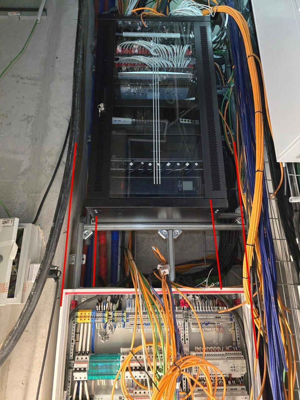 Установлено центральное звено системы — серверный шкаф, который станет «мозговым центром» умного дома. В нём разместится оборудование для обработки данных и координации всех подсистем. Грамотный монтаж шкафа обеспечивает надёжность и масштабируемость решения.